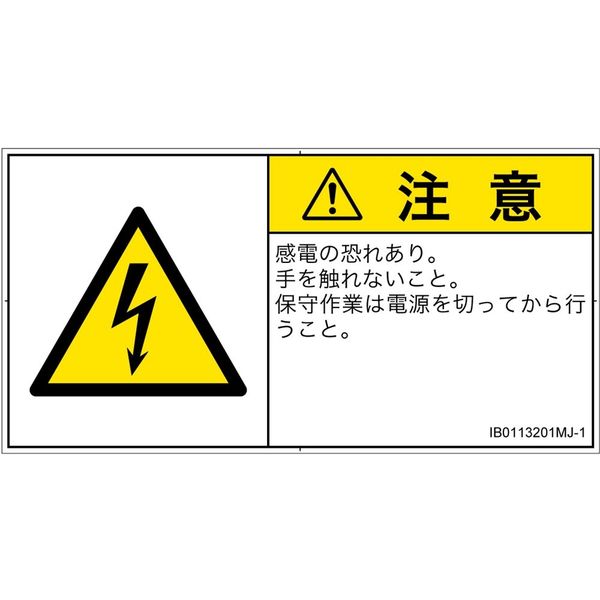 PL警告表示ラベル(ISO準拠)│電気的な危険:感電│IB0113201│注意│Mサイズ│日本語(ヨコ)│10枚 IB0113201MJ-1(直送品)
