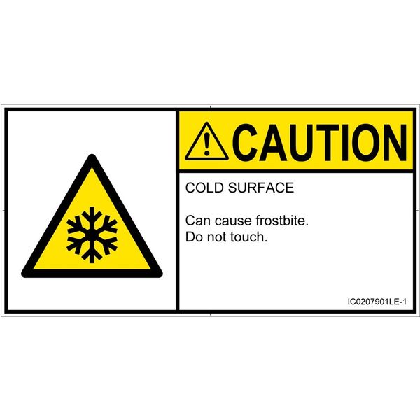 PL警告表示ラベル(ISO準拠)│熱的な危険:低温/凍結│IC0207901│注意│Lサイズ│英語(ヨコ)│6枚 IC0207901LE-1(直送品)