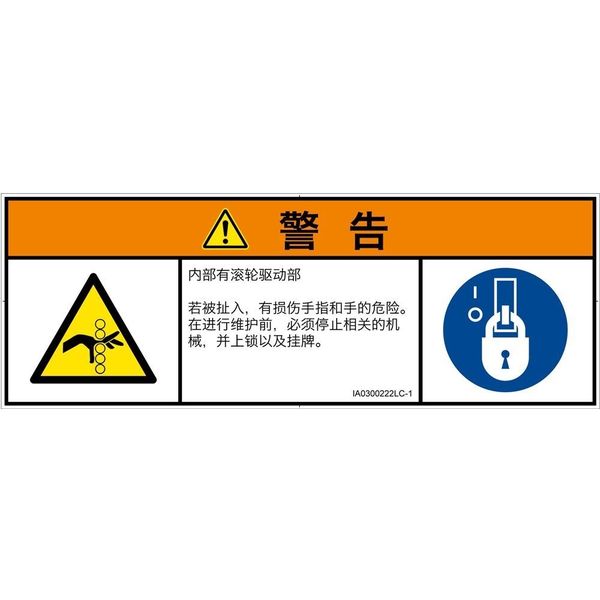 | ラベルサイズ | W172mm×H62mm | 危険の種類 | 機械的な危険 引き込み(ローラ) |