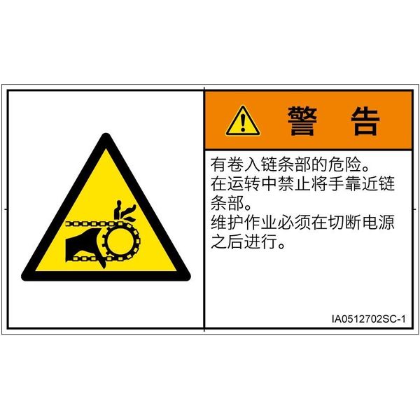 | 危険の種類 | 機械的な危険 引き込み(チェーン) | ラベルサイズ | W70mm×H42mm |