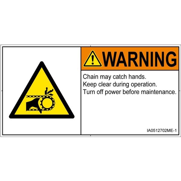 | シンボルマーク準拠規格 | メーカーオリジナル(ANSI Z535.3-2011準拠) | 危険の種類 | 機械的な危険 引き込み(チェーン) |