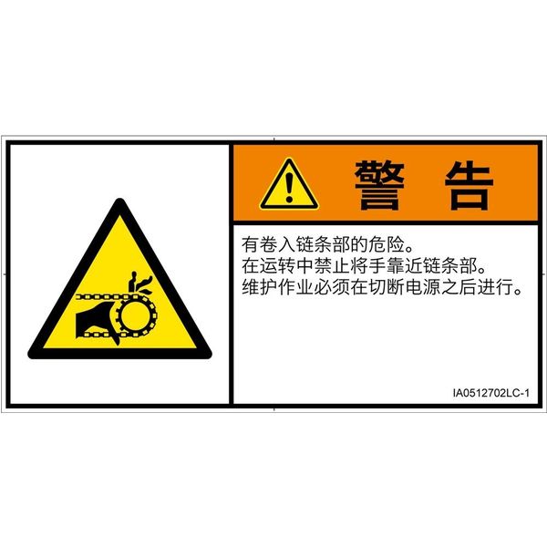 | 危険の種類 | 機械的な危険 引き込み(チェーン) | ラベルサイズ | W122mm×H62mm |