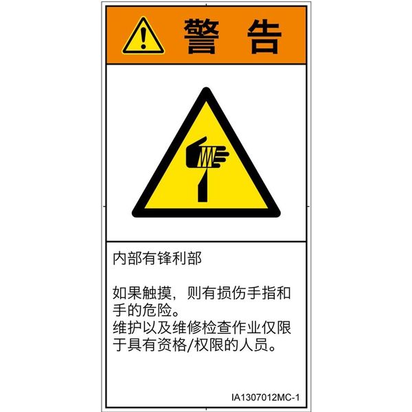PL警告表示ラベル(ISO準拠)│機械的な危険:切傷│IA1307012│警告│Mサイズ│簡体字(タテ)│10枚 IA1307012MC-1(直送品)