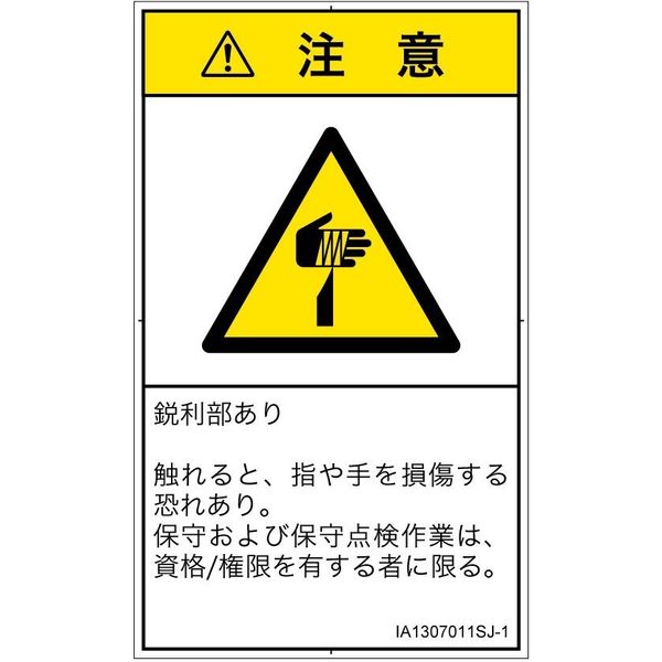 PL警告表示ラベル(ISO準拠)│機械的な危険:切傷│IA1307011│注意│Sサイズ│日本語(タテ)│16枚 IA1307011SJ-1(直送品)