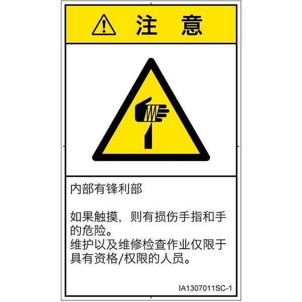 PL警告表示ラベル(ISO準拠)│機械的な危険:切傷│IA1307011│注意│Sサイズ│簡体字(タテ)│16枚 IA1307011SC-1(直送品)