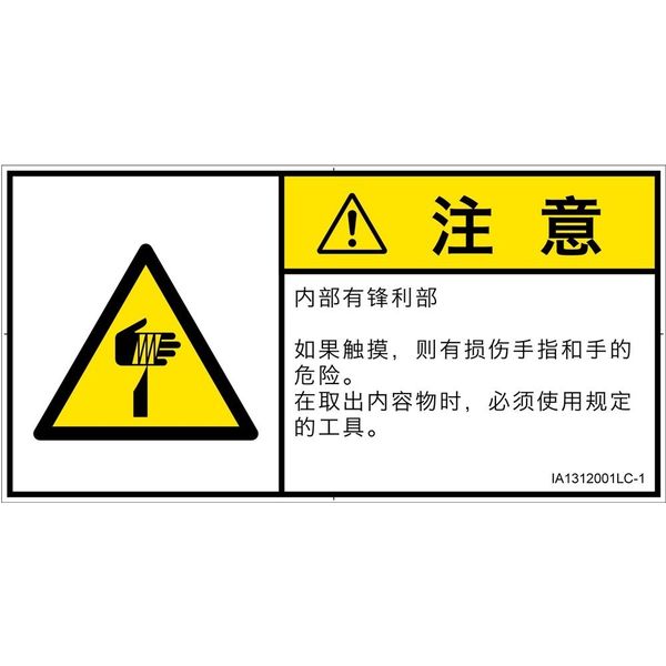 PL警告表示ラベル(ISO準拠)│機械的な危険:切傷│IA1312001│注意│Lサイズ│簡体字(ヨコ)│6枚 IA1312001LC-1(直送品)