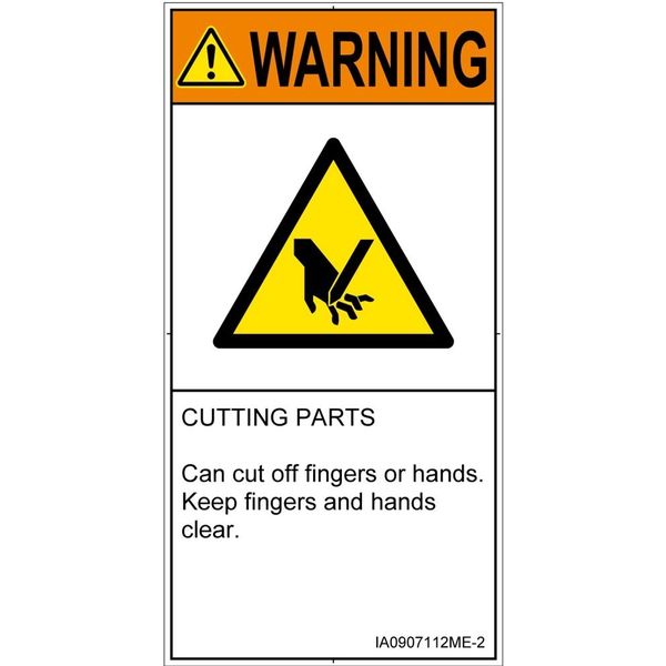 PL警告表示ラベル(ISO準拠)│機械的な危険:切断│IA0907112│警告│Mサイズ│英語(タテ)│10枚 IA0907112ME-2(直送品)