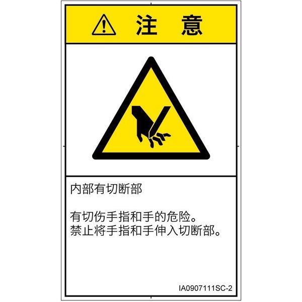 PL警告表示ラベル(ISO準拠)│機械的な危険:切断│IA0907111│注意│Sサイズ│簡体字(タテ)│16枚 IA0907111SC-2(直送品)