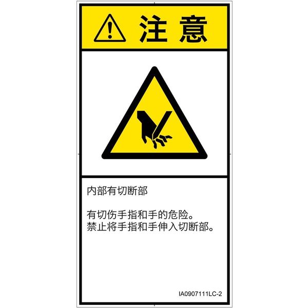 PL警告表示ラベル(ISO準拠)│機械的な危険:切断│IA0907111│注意│Lサイズ│簡体字(タテ)│6枚 IA0907111LC-2(直送品)