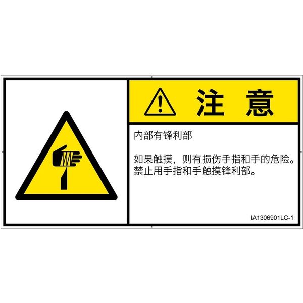 PL警告表示ラベル(ISO準拠)│機械的な危険:切傷│IA1306901│注意│Lサイズ│簡体字(ヨコ)│6枚 IA1306901LC-1(直送品)