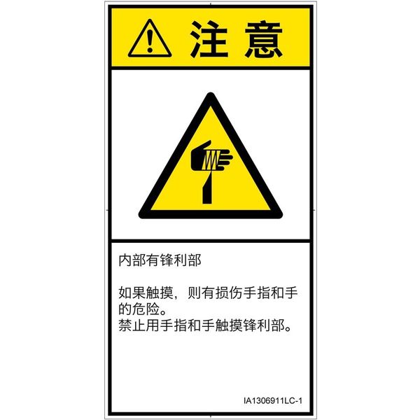 PL警告表示ラベル(ISO準拠)│機械的な危険:切傷│IA1306911│注意│Lサイズ│簡体字(タテ)│6枚 IA1306911LC-1(直送品)
