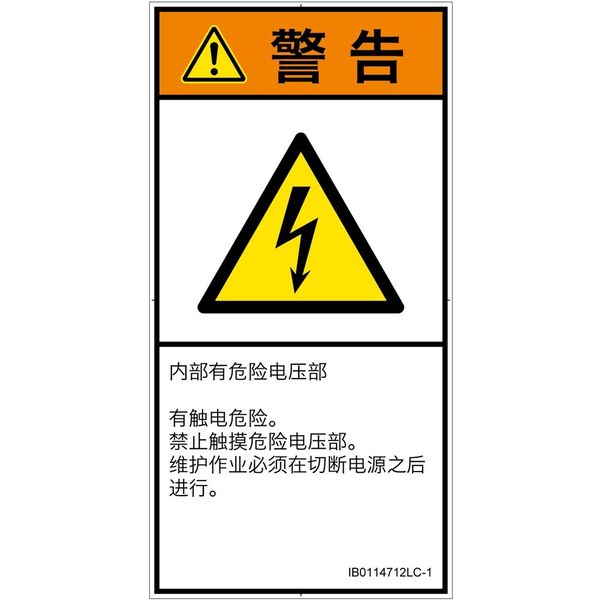 PL警告表示ラベル(ISO準拠)│電気的な危険:感電│IB0114712│警告│Lサイズ│簡体字(タテ)│6枚 IB0114712LC-1(直送品)