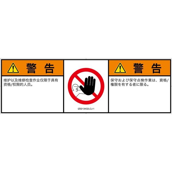 | ラベルサイズ | W191mm×H62mm | 危険の種類 | 禁止事項 権限のない人の立入禁止 |