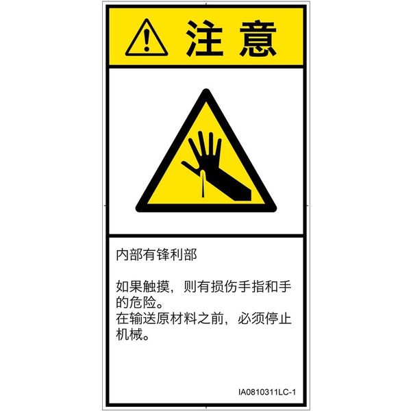 | 商品の特徴 | ●鋭利部あり●触れると、指や手を損傷する恐れあり。●原材料を送給する前に、機械を停止すること。 | ||