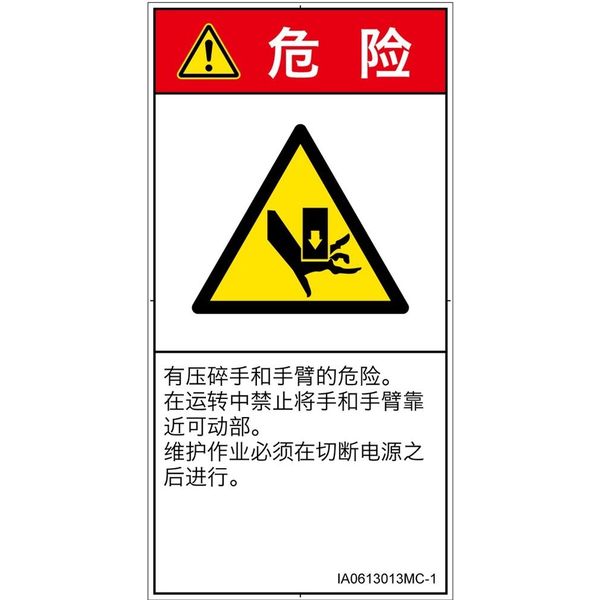 | ラベルサイズ | W47mm×H92mm | 危険の種類 | 機械的な危険 押しつぶし |