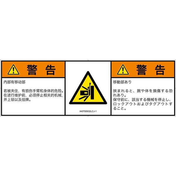 | 商品の特徴 | ●移動部あり●挟まれると、腕や体を損傷する恐れあり。●保守前に、該当する機械を停止し、ロックアウトおよびタグアウトすること。 | ||