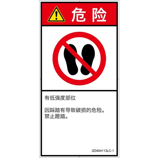 PL警告表示ラベル(ISO準拠)│禁止事項:乗らない│IZ0404113│危険│Lサイズ│簡体字(タテ)│6枚 IZ0404113LC-1(直送品)
