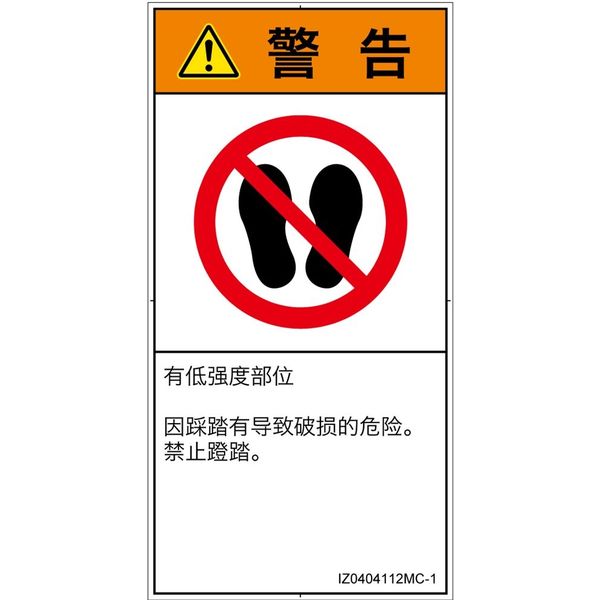 PL警告表示ラベル(ISO準拠)│禁止事項:乗らない│IZ0404112│警告│Mサイズ│簡体字(タテ)│10枚 IZ0404112MC-1(直送品)
