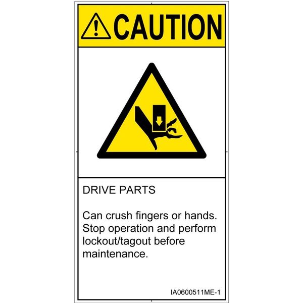 | 商品の特徴 | ●DRIVE PARTS●Can crush fingers or hands.●Stop operation and perform lockout/tagout before maintenance. | ||