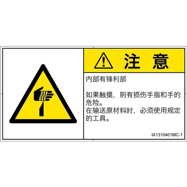 PL警告表示ラベル(ISO準拠)│機械的な危険:切傷│IA1310401│注意│Mサイズ│簡体字(ヨコ)│10枚 IA1310401MC-1(直送品)