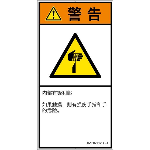 PL警告表示ラベル(ISO準拠)│機械的な危険:切傷│IA1302712│警告│Lサイズ│簡体字(タテ)│6枚 IA1302712LC-1(直送品)