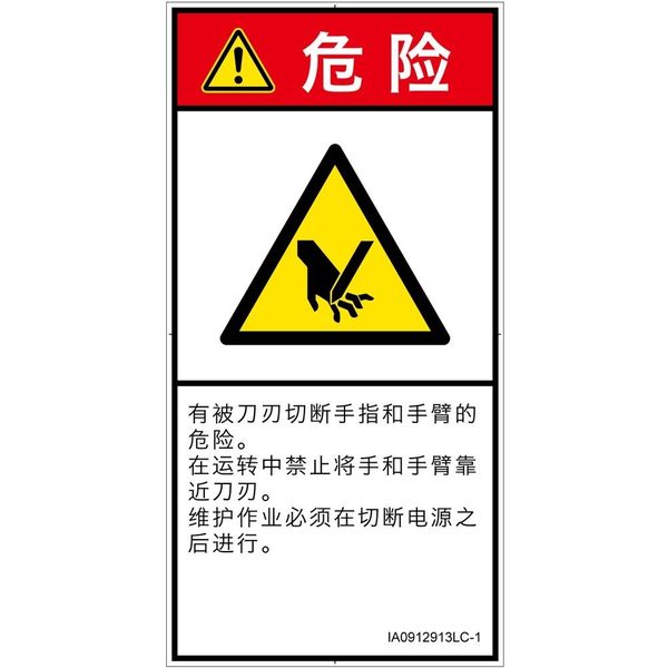 PL警告表示ラベル(ISO準拠)│機械的な危険:切断│IA0912913│危険│Lサイズ│簡体字(タテ)│6枚 IA0912913LC-1(直送品)