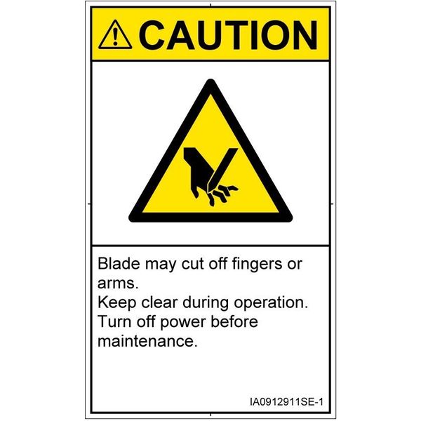 PL警告表示ラベル(ISO準拠)│機械的な危険:切断│IA0912911│注意│Sサイズ│英語(タテ)│16枚 IA0912911SE-1(直送品)