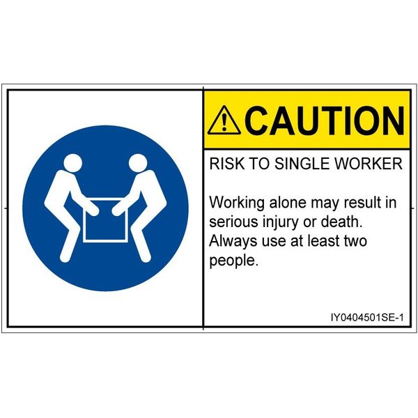 PL警告表示ラベル(ISO準拠)│指示事項:二人作業│IY0404501│注意│Sサイズ│英語(ヨコ)│16枚 IY0404501SE-1(直送品)