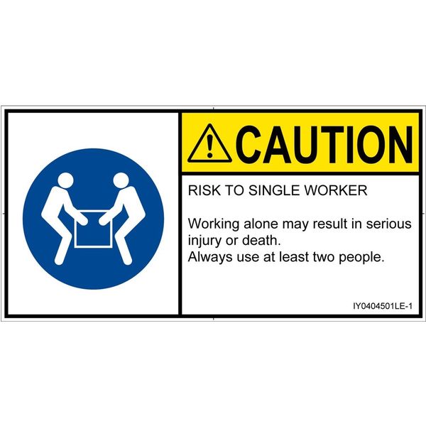 PL警告表示ラベル(ISO準拠)│指示事項:二人作業│IY0404501│注意│Lサイズ│英語(ヨコ)│6枚 IY0404501LE-1(直送品)