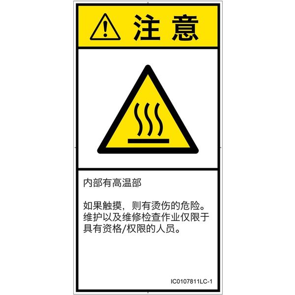 PL警告表示ラベル(ISO準拠)│熱的な危険:表面高温│IC0107811│注意│Lサイズ│簡体字(タテ)│6枚 IC0107811LC-1(直送品)