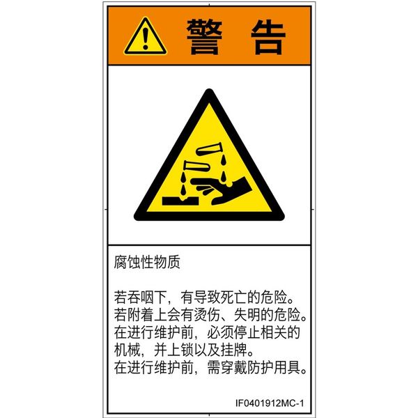 | ラベルサイズ | W47mm×H92mm | 危険の種類 | 材料・物質による危険 腐食性物質 |