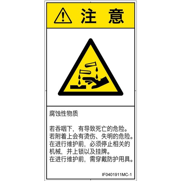 | ラベルサイズ | W47mm×H92mm | 危険の種類 | 材料・物質による危険 腐食性物質 |