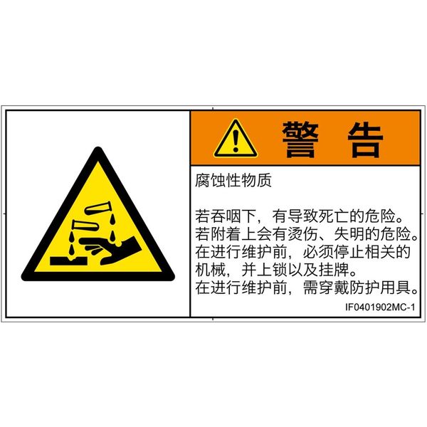 | 危険の種類 | 材料・物質による危険 腐食性物質 | ラベルサイズ | W92mm×H47mm |