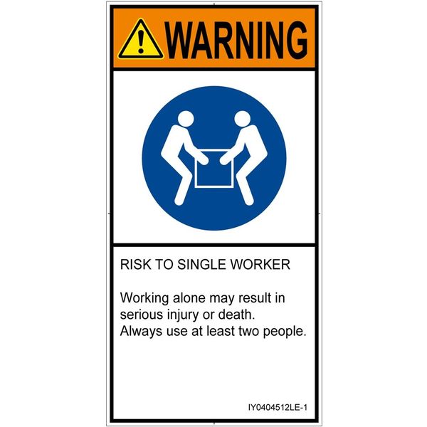 PL警告表示ラベル(ISO準拠)│指示事項:二人作業│IY0404512│警告│Lサイズ│英語(タテ)│6枚 IY0404512LE-1(直送品)