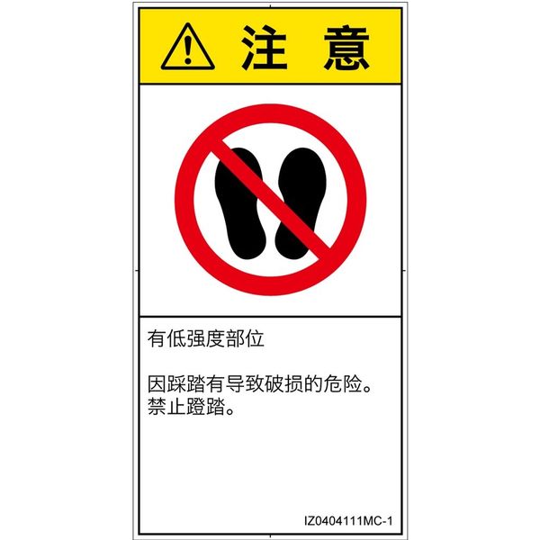 PL警告表示ラベル(ISO準拠)│禁止事項:乗らない│IZ0404111│注意│Mサイズ│簡体字(タテ)│10枚 IZ0404111MC-1(直送品)