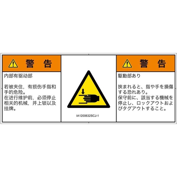 | ラベルサイズ | W105mm×H42mm | 危険の種類 | 機械的な危険 はさまれ |