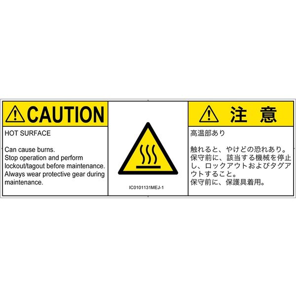 | 商品の特徴 | ●高温部あり●触れると、やけどの恐れあり。●保守前に、該当する機械を停止し、ロックアウトおよびタグアウトすること。●保守前に、保護具着用。●HOT SURFACE●Can cause burns.●Stop operation and perform lockout/tagout before maintenance.●Always wear protective gear during maintenance. | ||