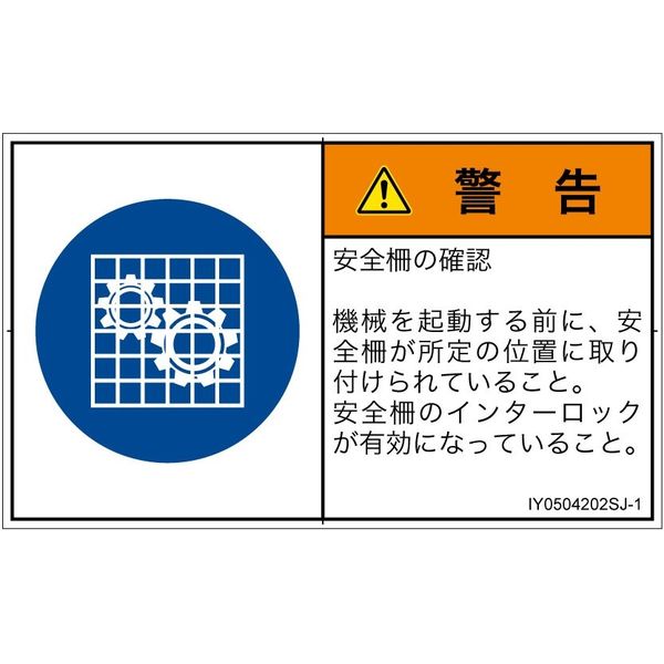 | 商品の特徴 | ●安全柵の確認●機械を起動する前に、安全柵が所定の位置に取り付けられていること。●安全柵のインターロックが有効になっていること。 | ||