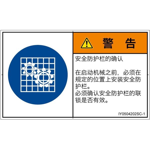 | 商品の特徴 | ●安全柵の確認●機械を起動する前に、安全柵が所定の位置に取り付けられていること。●安全柵のインターロックが有効になっていること。 | ||