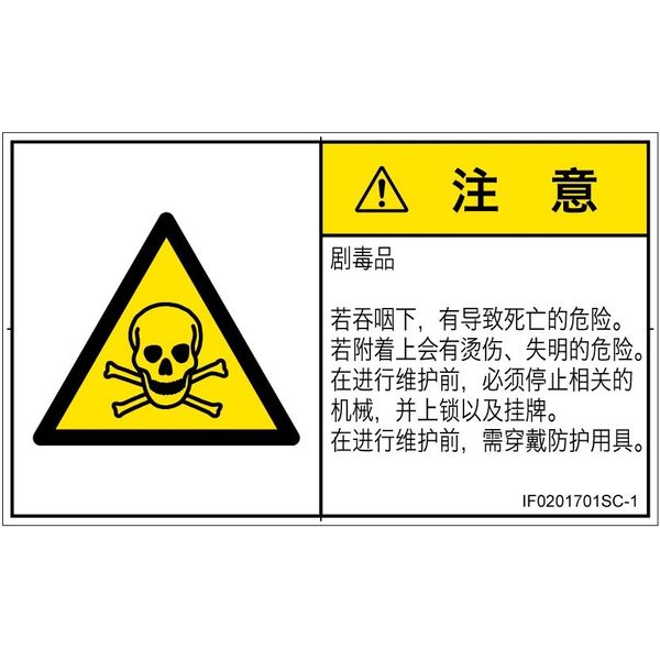 | 危険の種類 | 材料・物質による危険 有毒物質 | フォーマット準拠規格 | ISO 3864-2:2016、ISO 3864-1:2011 |