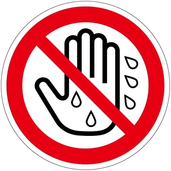 PL警告表示ラベル(ISO準拠)│禁止事項:ぬれ手禁止│IZ17│Lサイズ│シンボルマーク│20枚 IZ17L-1 1シート(20枚)(直送品)