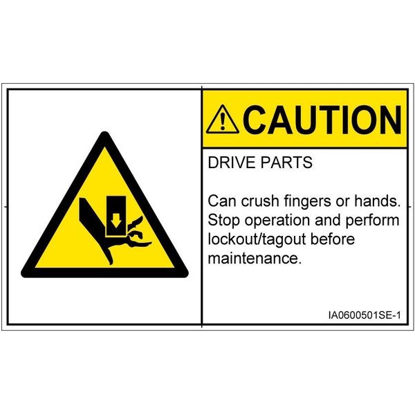| 商品の特徴 | ●DRIVE PARTS●Can crush fingers or hands.●Stop operation and perform lockout/tagout before maintenance. | ||