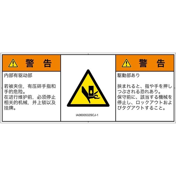 | ラベルサイズ | W105mm×H42mm | 危険の種類 | 機械的な危険 押しつぶし |