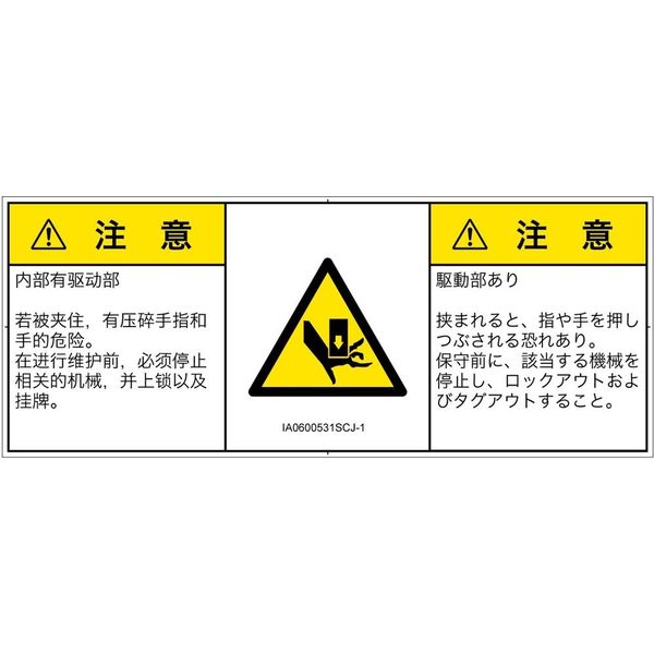 | ラベルサイズ | W105mm×H42mm | 危険の種類 | 機械的な危険 押しつぶし |