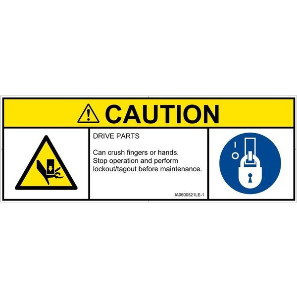 | 商品の特徴 | ●DRIVE PARTS●Can crush fingers or hands.●Stop operation and perform lockout/tagout before maintenance. | ||
