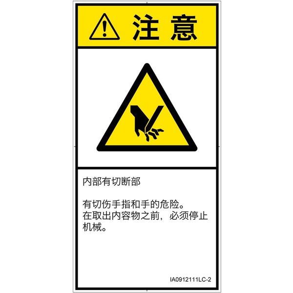 PL警告表示ラベル(ISO準拠)│機械的な危険:切断│IA0912111│注意│Lサイズ│簡体字(タテ)│6枚 IA0912111LC-2(直送品)