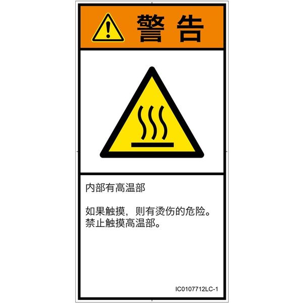 PL警告表示ラベル(ISO準拠)│熱的な危険:表面高温│IC0107712│警告│Lサイズ│簡体字(タテ)│6枚 IC0107712LC-1(直送品)