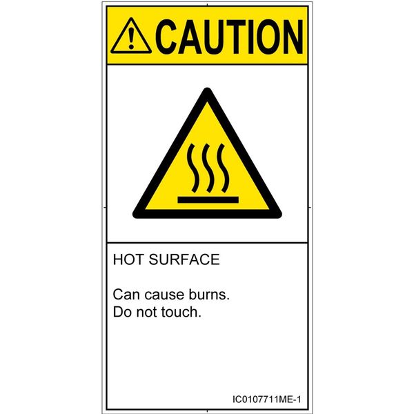 PL警告表示ラベル(ISO準拠)│熱的な危険:表面高温│IC0107711│注意│Mサイズ│英語(タテ)│10枚 IC0107711ME-1(直送品)
