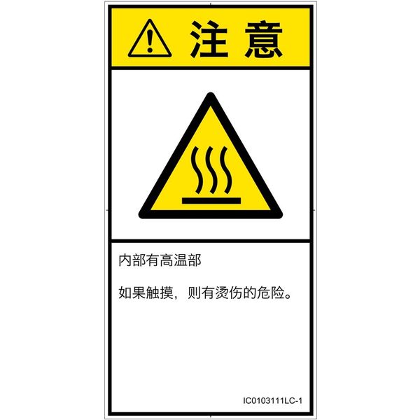 PL警告表示ラベル(ISO準拠)│熱的な危険:表面高温│IC0103111│注意│Lサイズ│簡体字(タテ)│6枚 IC0103111LC-1(直送品)