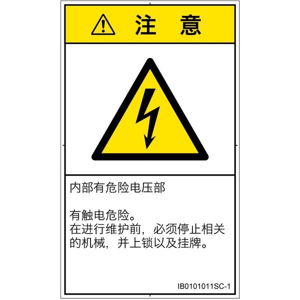 PL警告表示ラベル(ISO準拠)│電気的な危険:感電│IB0101011│注意│Sサイズ│簡体字(タテ)│16枚 IB0101011SC-1(直送品)